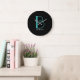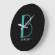 DIY Large Monogram & Name, Teal/White Text, Black Clock