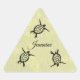 Original art woodcut of sea turtle on triangular yellow sticker.