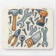 A fun scene where a hammer, wrench, and drill come alive, all smiles, hanging out with lively screws and nails in a playful doodle style