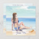 ** This soothing soft beautiful watercolor Beach design is Nautical Scene of a Sea Shore Beach painting of a Woman / Young Girl enjoying the view of the gentle tide come in as she is sun bathing on the Tropical Beach shore.