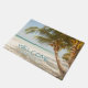 Personalize "Welcome To Our Beach Home" message or use Family Name in Teal and White Text on photo of Beach with Palm Trees. This simple Design makes a great gift.