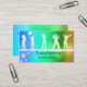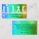 Custom colourful business cards perfect for DJs, musicians, and clubs. With a gradient background in blue, green, and gold, the white silhouettes of dancers stand out nicely. Customize the text on front and back to suit your needs. Change font style, colour, and sizes, even add more text if you want.