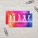 Custom colourful business cards perfect for DJs, musicians, and clubs. With a gradient background in yellow, orange, pink, purple, and blue, the white silhouettes of dancers stand out nicely. Customize the text on front and back to suit your needs. Change font style, colour, and sizes, even add more text if you want.