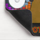 Funny cute mouse pad featuring a happy brown cartoon DJ potato wearing headphones and holding a record in his stick arms. He has two tiny dots for eyes and a big happy smile. In front of him is a DJ desk with a template reading DJ POTATO in a dark maroon with a yellow outline. This can be used as it is or replace with your own text to personalize. Behind the potato is a colourful equalizer and some musical notes.