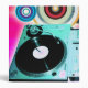 DJ Turntable with vinyl music albums records for disc jockey with coloured circles and balls pop art.