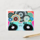 DJ Turntable with vinyl music albums records for disc jockey with coloured circles and balls pop art.