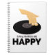 Original design of a DJ scratching with the words "DJing Makes Me Happy".