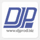 Square stickers featuring the DJP website logo, sheet of 20, 1.5-inch