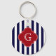 Dk Blue White Stripe Cranberry Quatrefoil Monogram Keychain