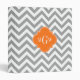 Dark Grey and White Large Chevron ZigZag Pattern, Pumpkin Orange 3 Initial Monogram Label