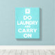 © Pela Studio / Wild Apple. The image features a blue box with white text that reads Do Laundry and Carry On. Great for display on laundromats.