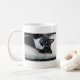A fun inspirational photo of a black and white tuxedo cat paired with a great goal setting don’t be jaded motivational quote design fun encouragement pet kitty photo epic motto deluxe ceramic coffee tea or cocoa mug. Get an epic motivation slogan design cup today.