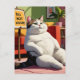 Cool funny fat lazy cat with a do not Disturb sign resting in a living room