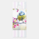 Door hanger with an amazing photograph of the cutest little bird perched on a branch covered in pink blossoms and green leaves. The bird has a blue head and yellow body with a very sweet face. Adorable.