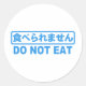 This fun design would more accurately be translated as: Can't be eaten, but it is translated as: Do Not Eat. This text was taken from actual food packaging in Japan.