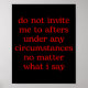 Do Not Invite Me To Afters Under Any Cirstances No Poster