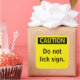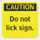 Small Caution Parody Warning Sticker. Do not lick sign. Add some humour to your environmental health and safety program.