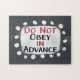 Bold text reading "Do Not Obey In Advance" is centred against a grey background. The black and red text sits on a white rectangle with large textured white dots around it, providing a playful contrast against the solid colour backdrop. This is Lesson #1 from "On Tyranny" by Timothy Snyder.