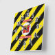An illustration of a simple red gift box with the text "Do not open until Christmas", and black and yellow striped background. Gifts are the best way of giving surprise to your family and friends. This design is good to be printed on a sticker or gift wrapper for the presents put under the Christmas tree.