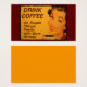 Smiling woman with retro red lipstick and nails drinks her cup of morning coffee. The caption reads "Drink Coffee - Do Stupid Things Faster with More Energy."