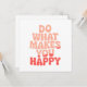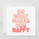 Brighten someone’s day with this cheerful and uplifting greeting card featuring the inspiring phrase “Do What Makes You Happy” in vibrant, colourful lettering. Whether you're gifting it to a friend or using it as a daily reminder to lead with kindness, this design delivers a message of encouragement, joy, and good vibes.