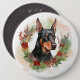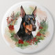 Doberman Christmas Wreath Festive Pup 6 Inch Round Button