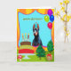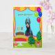 Doberman Dog Happy Birthday Card. A cute photo of Doberman dog wishing "Happy Birthday" and balloons in background adds colours to this beautiful birthday card.