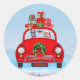 Doberman Dog In Car With Santa Claus Classic Round Sticker