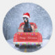 Doberman Dog in Snow sitting in Christmas Truck Classic Round Sticker