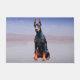 A cute Doberman Dog sitting with colourful background, a perfect gift idea for someone who love this dog breed.