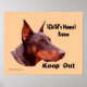 Unfriendly looking doberman face kid's room Keep Out personalized wall or door poster. Fill in your child's name in the template. You can further customize any text and font size, colour, and style. Great gift idea. This design is available on many products in my gallery.