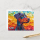 This is an abstract colourful dog portrait of a Doberman breed dog in paper quilling art style. It is a lovely postcard for dog lovers and Doberman owners.