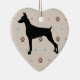For dog parents, we love to include our furry kids in the holiday celebration or family event. This ornament with a silhouette of a Doberman Pinscher is the perfect way to commemorate your beloved dog. Customize the back with your dog's name, titles, or your favourite saying. With a pattern of tan paw prints and blue dots on a beige background, this ornament is sure to please any dog lover or pet owner.
