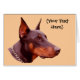 Not so happy looking black and rust doberman pinscher face dog card. Replace your text in the template, or delete for no text. Click on Customize to change font size, style, and colour. Contact me with any design questions or requests. This image is available on many products in my store. Thanks for stopping by Smilin' Eyes Treasures.