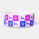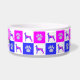 Doberman Pinscher dog silhouette crazy hot pink and blue abstract pattern. The paw prints alternating with pet canine shapes make a cute animal pattern. Personalize with your pets name or leave the breed. It also looks good with no writing.
