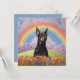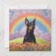 A personalized Doberman Pinscher memorial sympathy card with a beautiful painting of a Doberman Pinscher on a heavenly hill with a beautiful rainbow overhead. Symbolizing the Doberman Pinscher (Dobermann) dog has passed the rainbow bridge to doggy heaven. You can personalize it with your own Doberman Pinscher dog's name or any other text on the back side of the card. Makes a special memorial or sympathy gift for any Doberman Pinscher dog lover if their dear dog has passed.