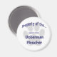 Every good dog owner knows they are the property of their dog. Doberman Pinscher owners will wear: Property of my (spoiled rotten) Doberman Pinscher with pride on a t-shirt, button, mug, magnet, keychain and more.