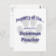 Every good dog owner knows they are the property of their dog. Doberman Pinscher owners will wear: Property of my (spoiled rotten) Doberman Pinscher with pride on a t-shirt, button, mug, magnet, keychain and more.