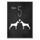 White Doberman Pinscher bride and groom silhouettes with heart. A chalkboard style wedding reception table card for Dobe lovers. Each card must be numbered and added to cart separately. Visit Jenn's Doodle World for even more dog breed table cards and Doberman themed wedding planning products.