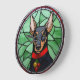 Elevate your holiday decor with this exquisite stained glass Christmas ornament. Crafted with meticulous attention to detail, this ornamental masterpiece captures the essence of canine charm. Its vibrant colours and intricate design evoke a sense of warmth and joy, adding a touch of elegance to your tree. Handcrafted with love, this timeless piece is a perfect gift for dog lovers and enthusiasts alike. A must-have for Christmas enthusiasts, stained glass ornaments, pet-themed decorations.