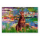 Water Lys de Claude Monet, adapté pour inclure un Doberman Pinscher rouge.