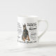 This mug is imprinted with a Bach Solos Suite for Cello. It was purchased as a thank you gift for a professional cellist friend who often performs this work. The cup is made of a high-grade ceramic and is fairly light. The walls are not too thick and it is a small to medium size. It's well finished, has a high-gloss glaze, and looks very elegant. The Bach Solo Suite score on the example I received was clear and had high contrast. Even though the staffs were small, the music was easy to read. The cellist who received this cup immediately knew what the music was as soon as she set eyes on it.