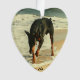 La peinture de Digitals d'un beau Pinscher de dobermann gambadant sur la plage comme ressacs lavent sur le rivage et des empreintes de pattes de partir dans le sable.