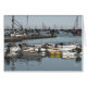 These small boats wait at the dock for a chance to ferry their crews out to the beautiful sailboats in the harbour. The water is calm and this image is rendered in an artistic manner to evoke a sense of peace and calm.