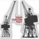 Silhouettes of two dockyard cargo cranes. Vector icons with customizable colour. Custom text.