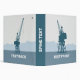 Silhouettes of dockyard cargo cranes. Vector icons with customizable colour. Custom text on both sides.