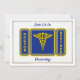 This blue and gold invitation is decorated on the front with a gold caduceus shiled. You can customize this card by placing your information into the boxes provided.