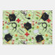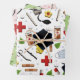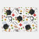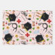 Creative doctor medical school graduation gift wrap design pattern featuring healthcare supplies and graduation caps.