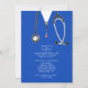 Creative medical school graduation party invites featuring blue hospital scrubs and stethoscope. Edit text to create unique doctor grad party invitation or medical school graduate announcement.