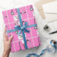 Creative doctor gift wrap featuring pink hospital scrubs and stethoscope illustration. Edit text to add doctor, nurse or physician assistant's name.